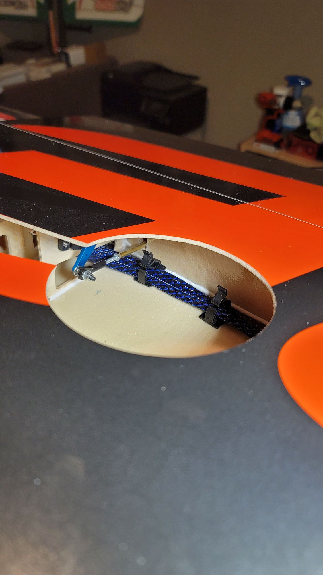 Cable holders in place and gooped in. This keeps them clear of the flap actuator