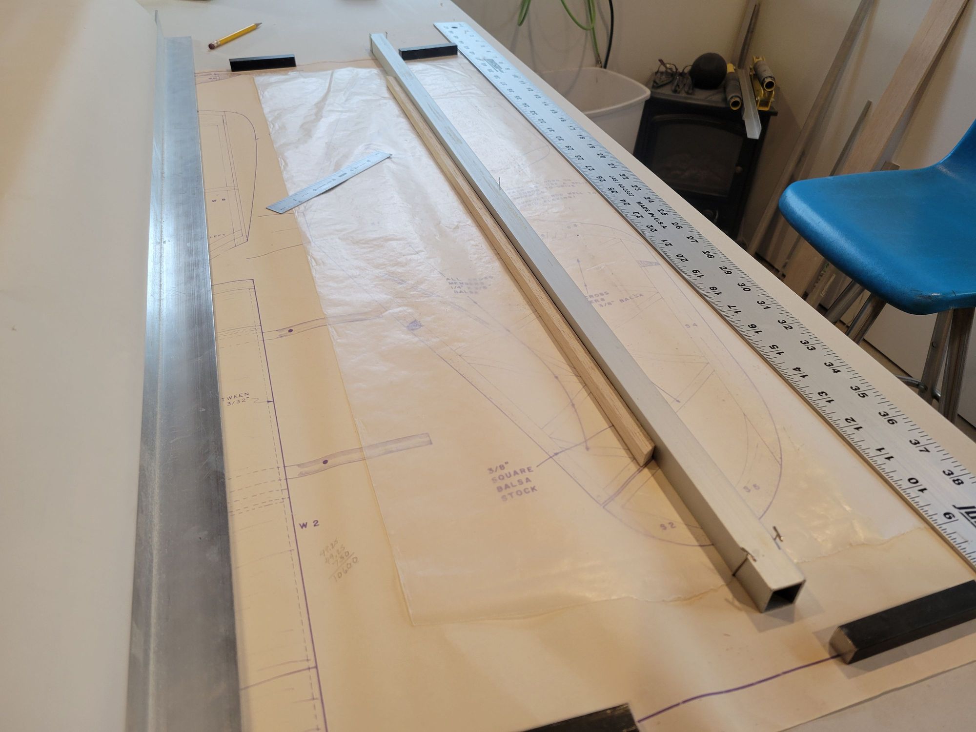 Once again I find use for some of my aluminum stock to help ensure a straight TE on the stab. The TE stock was substituted with more dense balsa that I had in stock for improved strength.